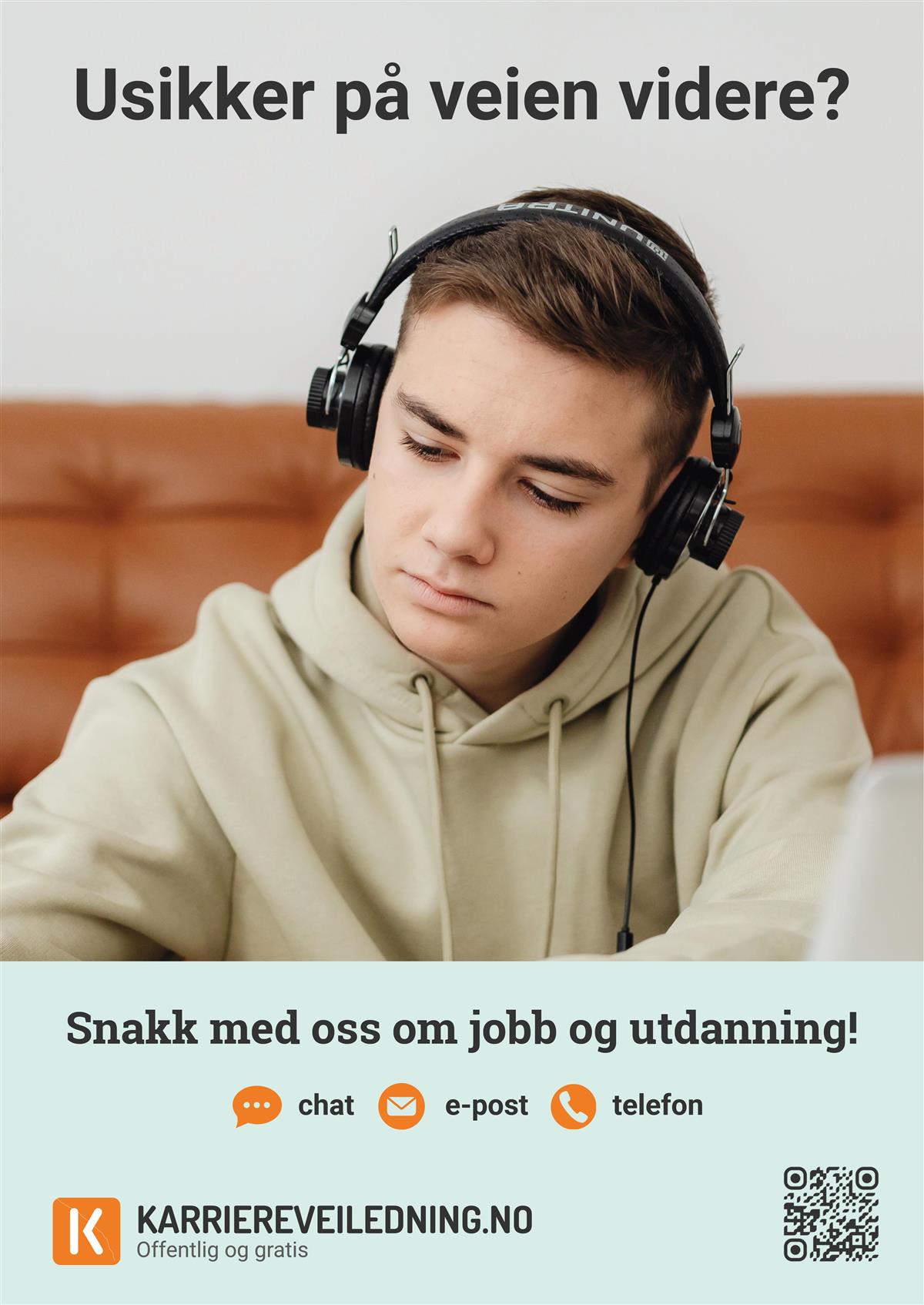Usikker på veien videre?Få gratis veiledning om jobb og utdanning - du kan snakke med en karriereveileder på chat, telefon og epost Publisert 18.03.2026 12.23 Sist endret 18.03.2026 12.23